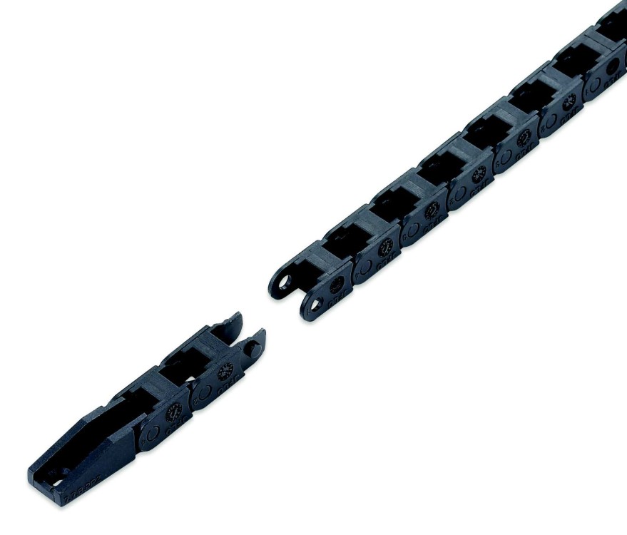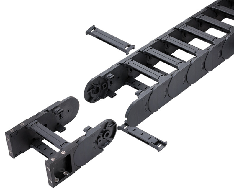 坦克工程拖鏈適用于數控機床、加工中心、自動化機械及生產線等各類機床、機器人、運輸機械、測量儀器、搬運裝置以及其它驅動控制作為電線、電纜液、氣軟管的防護裝置,能隨機床、機械設備移動部件協調地運行,可發揮安全保護和導向的能力,可延長被保護的電線、電纜、液、氣軟管的使用壽命,降低消耗,可大大改善機床、機械設備的電線、電纜、液、氣軟管分布零亂的狀況,使之整齊、規則地排列在一起,能增強機床、機械設備的整體藝術造型效果。坦克工程拖鏈按材質分為塑料坦克工程拖鏈和鋼制坦克工程拖鏈。按結構分為橋式坦克工程拖鏈和全封閉式坦克工程拖鏈。坦克工程拖鏈內部高度從10-80(mm)不等,寬度從10-350(mm)不等,根據您想要保護的線纜的尺寸和線纜的數量來確定。拖鏈的使用強度主要和原料中所含的尼龍含量有關系。所以坦克工程拖鏈廠家又分為普通型坦克工程拖鏈和增強型坦克工程拖鏈。
