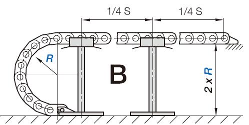 如果在整個(gè)行程中拖鏈的上部未接觸下部。這種情況我們稱之為架空。移動端到拖鏈彎曲半徑圓弧的距離稱之為架空長度。架空是最常用的應(yīng)用。工程拖鏈非常適用高要求長使用壽命的場合。最在架空長度取決于拖鏈或拖管的類型以及內(nèi)部負(fù)載。