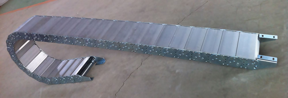 (2)鋼制拖鏈的每一節(jié)都能打開,便于安裝和維修。運動時噪音低、耐磨,可高速運動。
